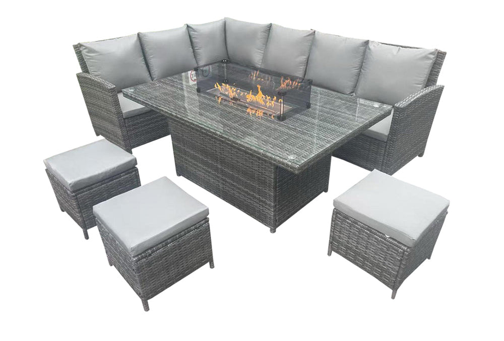 Luxury Monaco Rattan Firepit Corner Garden Set Outdoor Patio Furniture - Grey