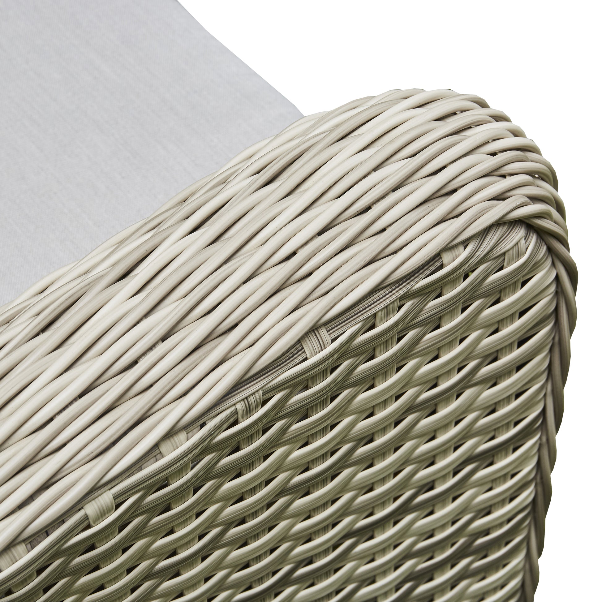 Its sturdy aluminium frame guarantees long-lasting strength, while the weather-resistant PE rattan weave adds to its visual charm and durability against the elements.