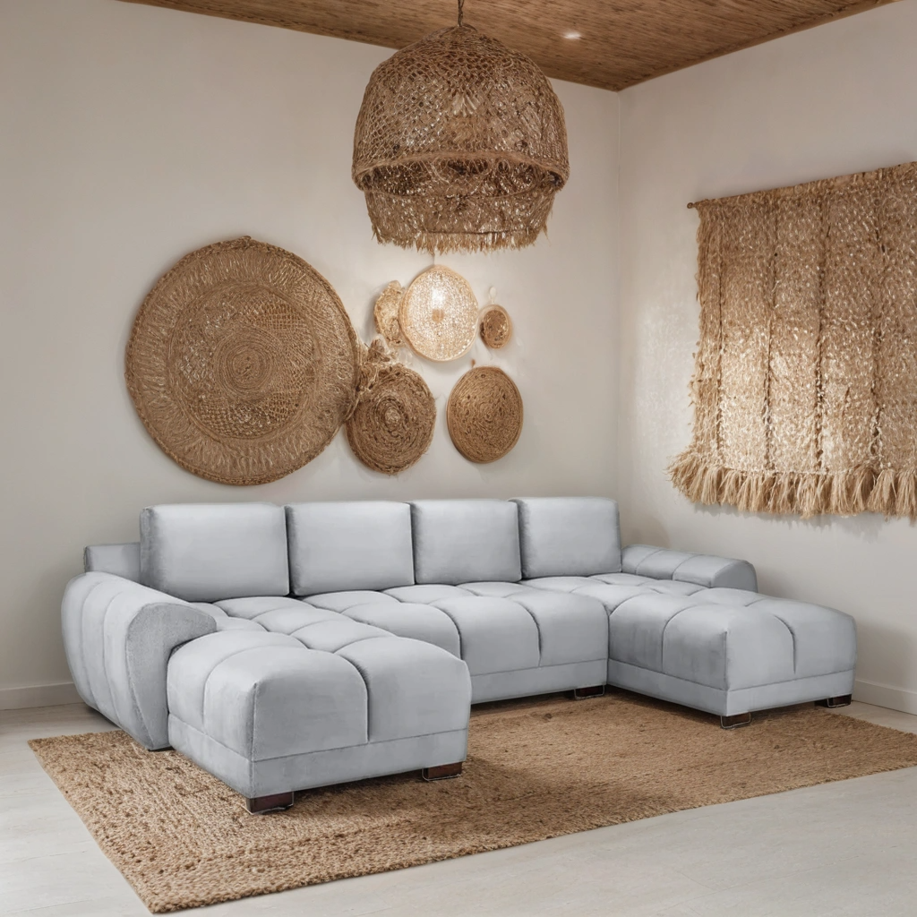 The Osla U-Shaped Corner Sofa in Grey combines luxury, comfort, and smart functionality in one stylish design.