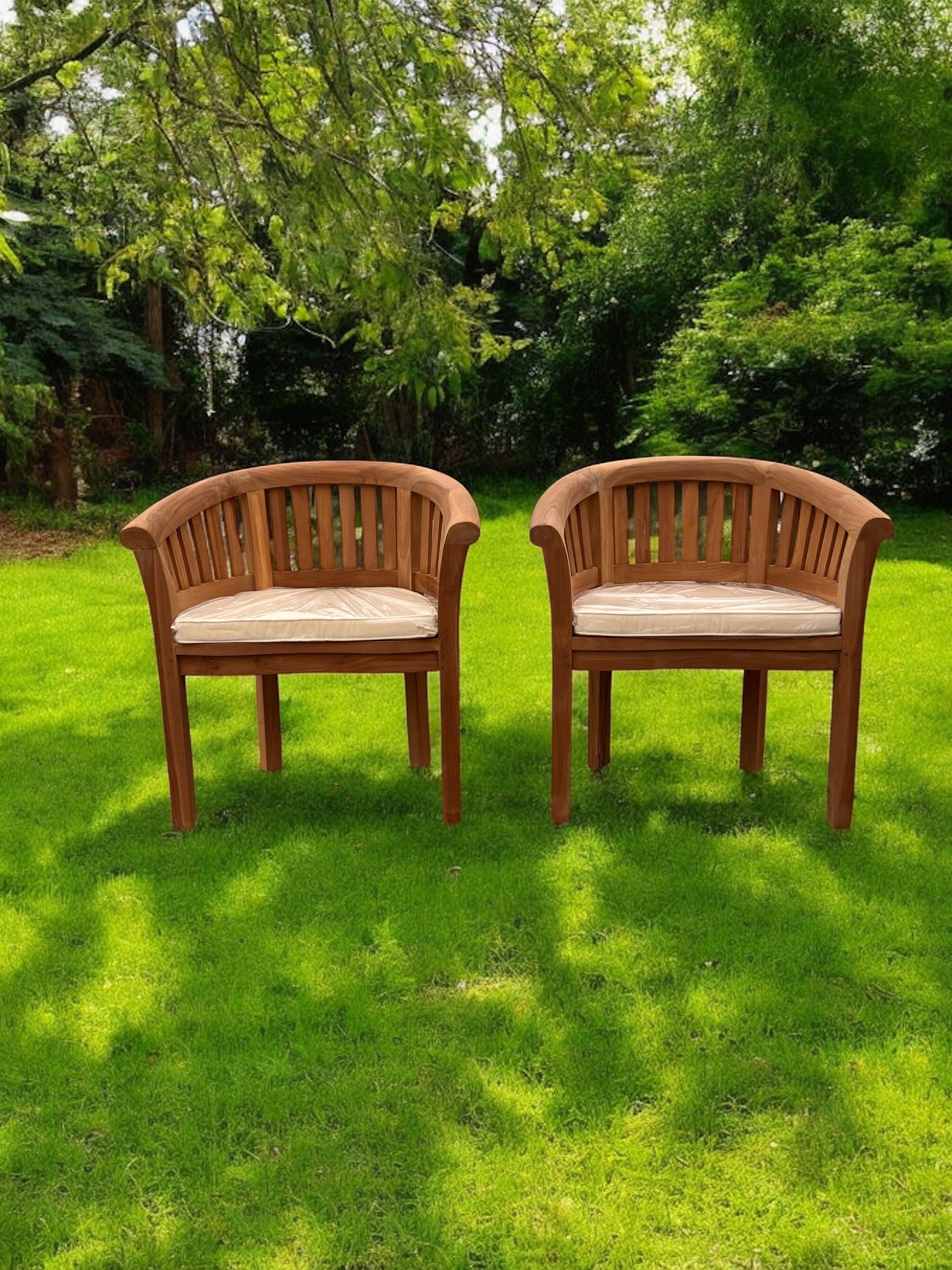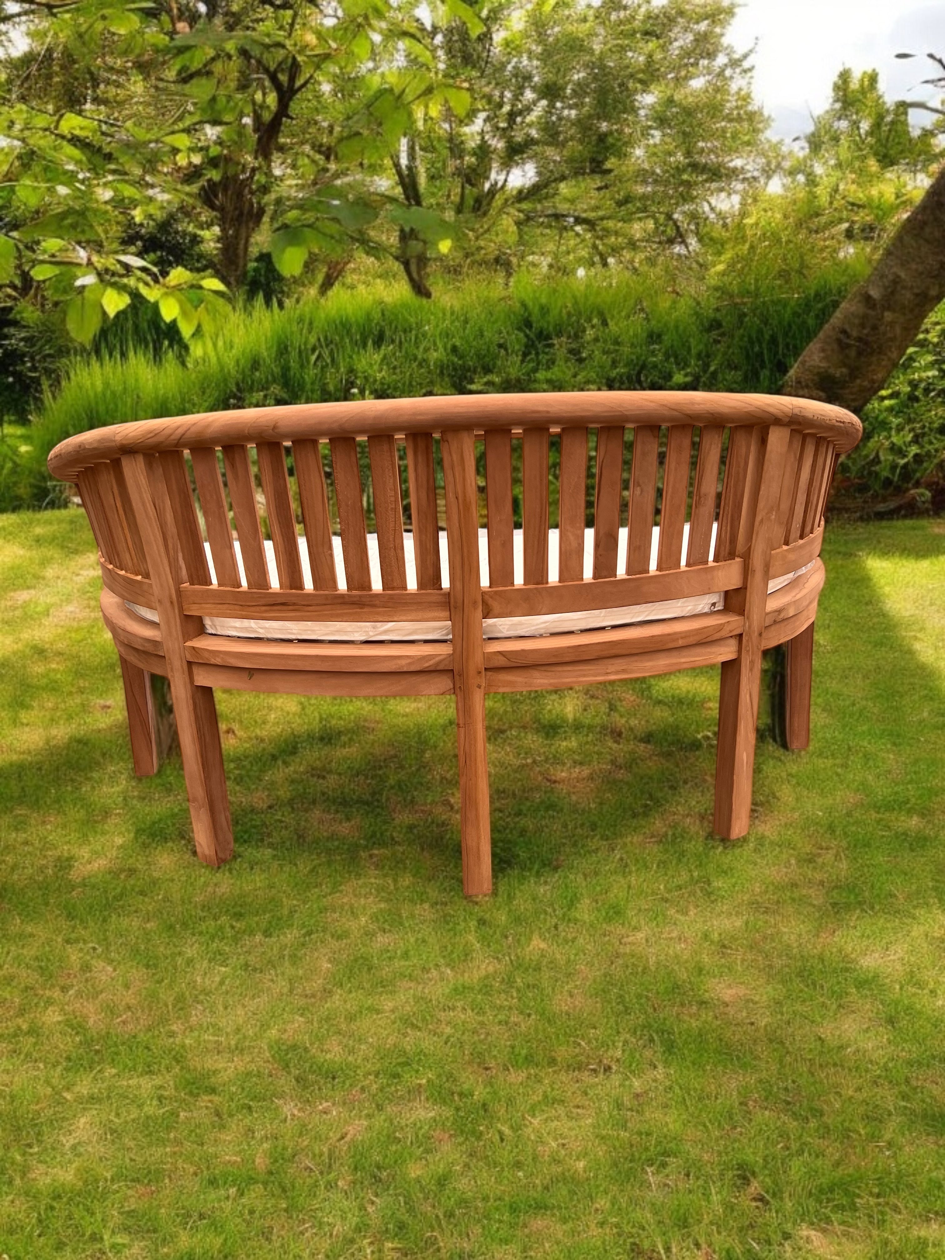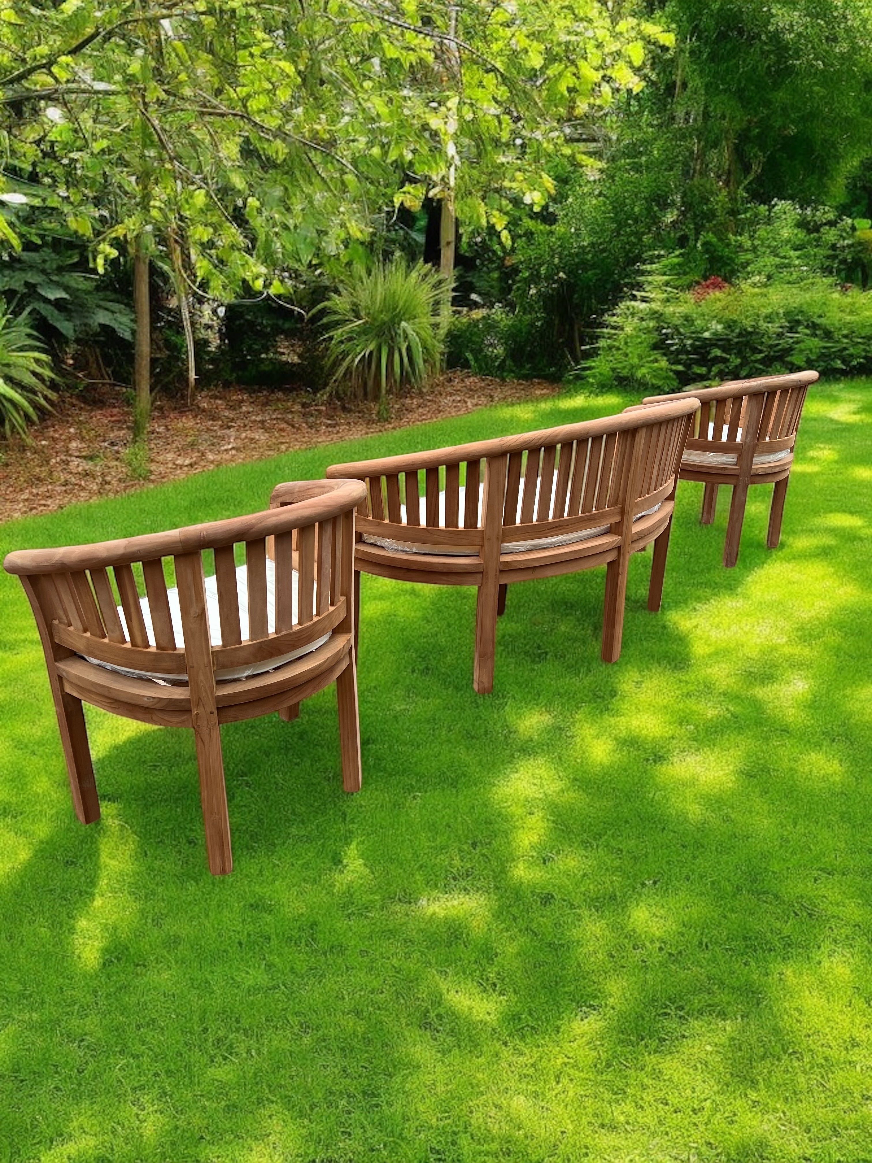 Harmony Curved Teak Garden Bench Set Vertical